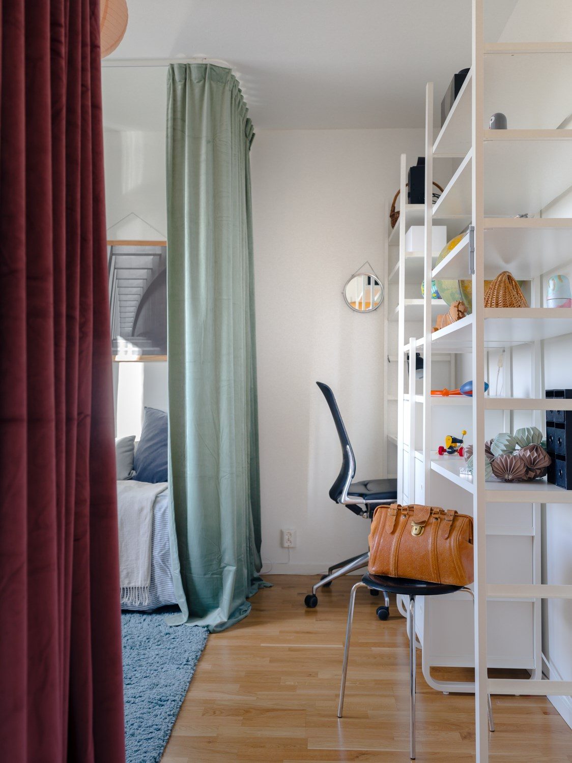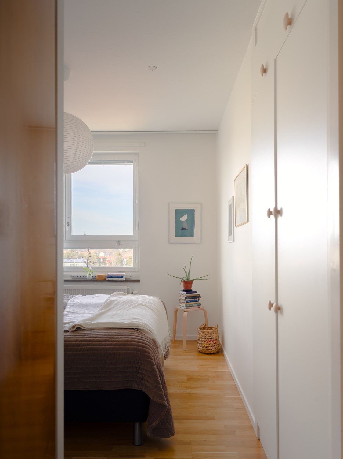 Detta sovrum ligger intill köket och nås från hallen. Det används idag som ett föräldrasovrum, med gott om plats för dubbelsäng och tillhörande möbler. Det finns också nya inbyggda garderober med överskåp. Från det norrvända fönstret har man fri utsikt rakt mot centrala Stockholm.