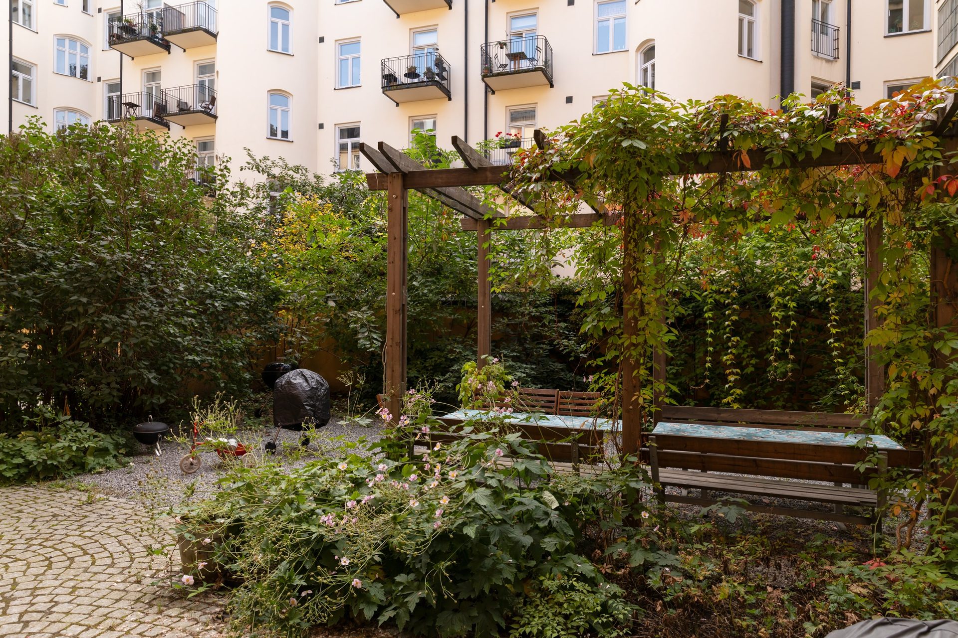 Den här fina och familjära lägenheten disponeras idag som en trea med två rymliga sovrum, ett luftigt sällskapsrum och ett renoverat kök och badrum. Den generösa klädkammaren är en uppskattad detalj med platsbyggd förvaring. Originaldetaljer ger en charmfull inramning i form av dörrar med karmar och foder, golvsocklar, fönsterkarmar och det genomgående brädgolvet i hall, vardagsrum och sovrummen. Lägenheten disponerar också ett källarförråd om ca 5 kvm. Tvättstuga ligger belägen i källaren, utrustad med två tvättmaskiner, en torktumlare, torkskåp och mangel. Den härliga innergården totalrenoverades 2016 med hjälp av en arkitekt och är perfekt för grillkvällar och andra tillställningar, försedd med bord, bänkar, grill, cykelparkering och eldklot vintertid. Många grannar har bott i huset länge, ett tecken på att man trivs!
