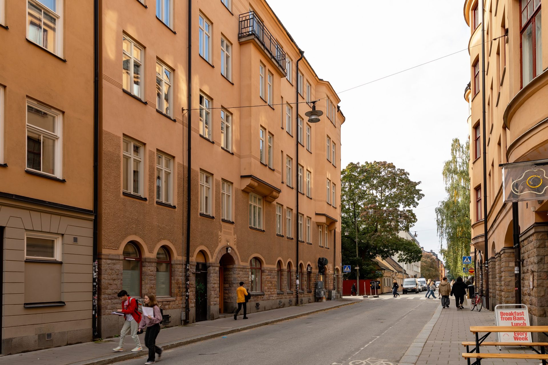 Här bor du på en lugn gata i äkta kulturkvarter invid Katarina kyrka. Läget är avskilt men ändå mitt i smeten, nära såväl Götgatsbacken och Mosebacke som SoFo och Nytorget, och har ett brett urval av restauranger och caféer, och både små unika butiker och större kedjor inom kort promenadavstånd. Du bor mitt emot det populära brunchhaket Greasy Spoon där kön ringlar lång om helgmorgnarna. Granne på Tjärhovsgatan 36–38 ligger fina Törnquistska slaktargården som uppfördes 1728–1733 och idag är byggnadsminnesklassad.