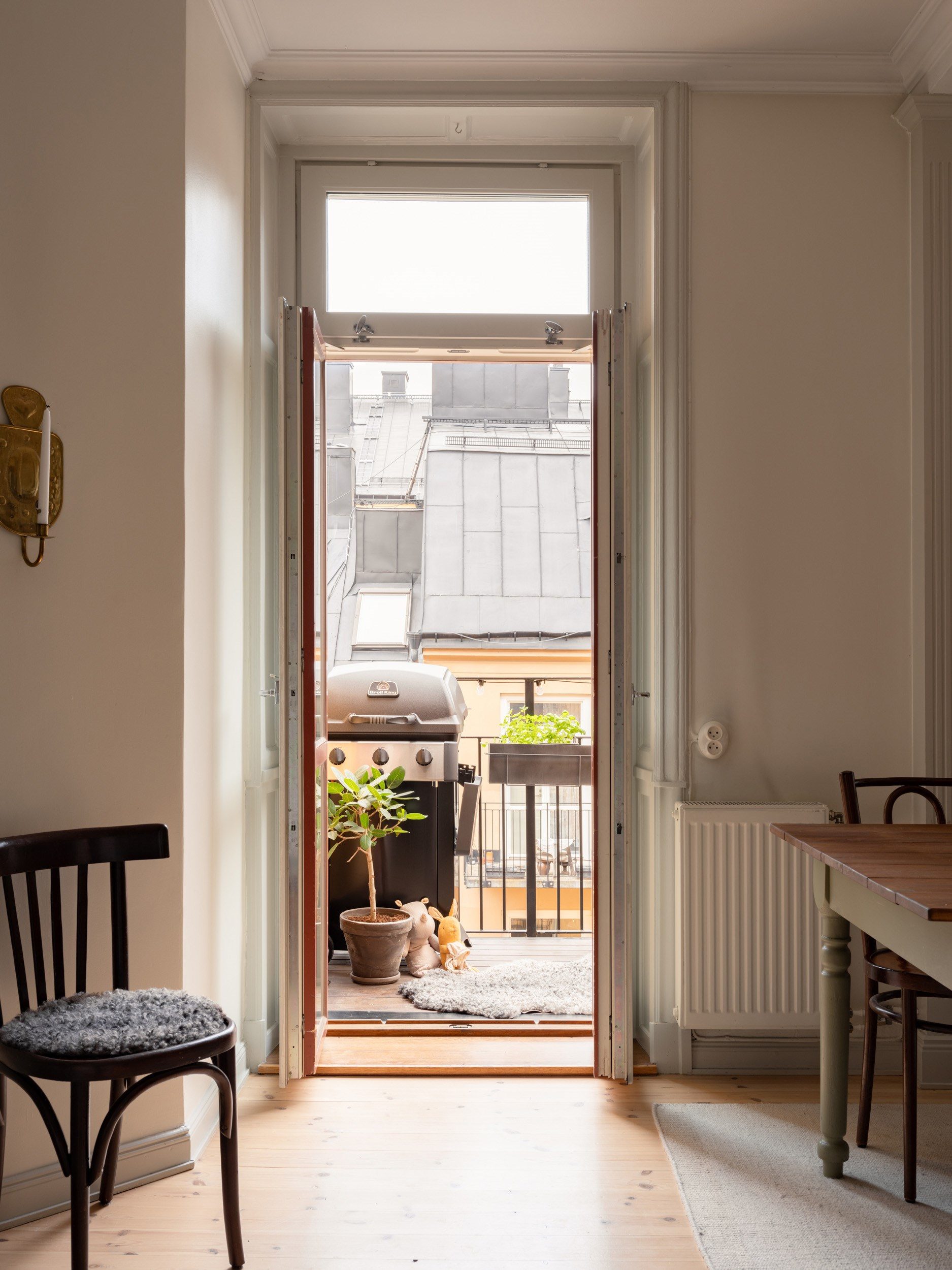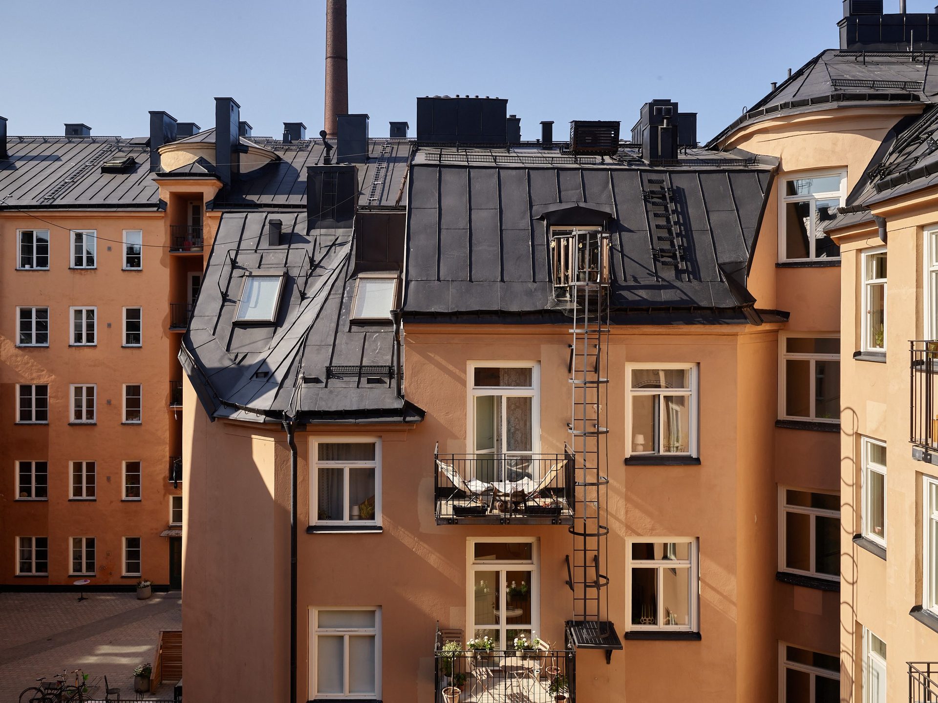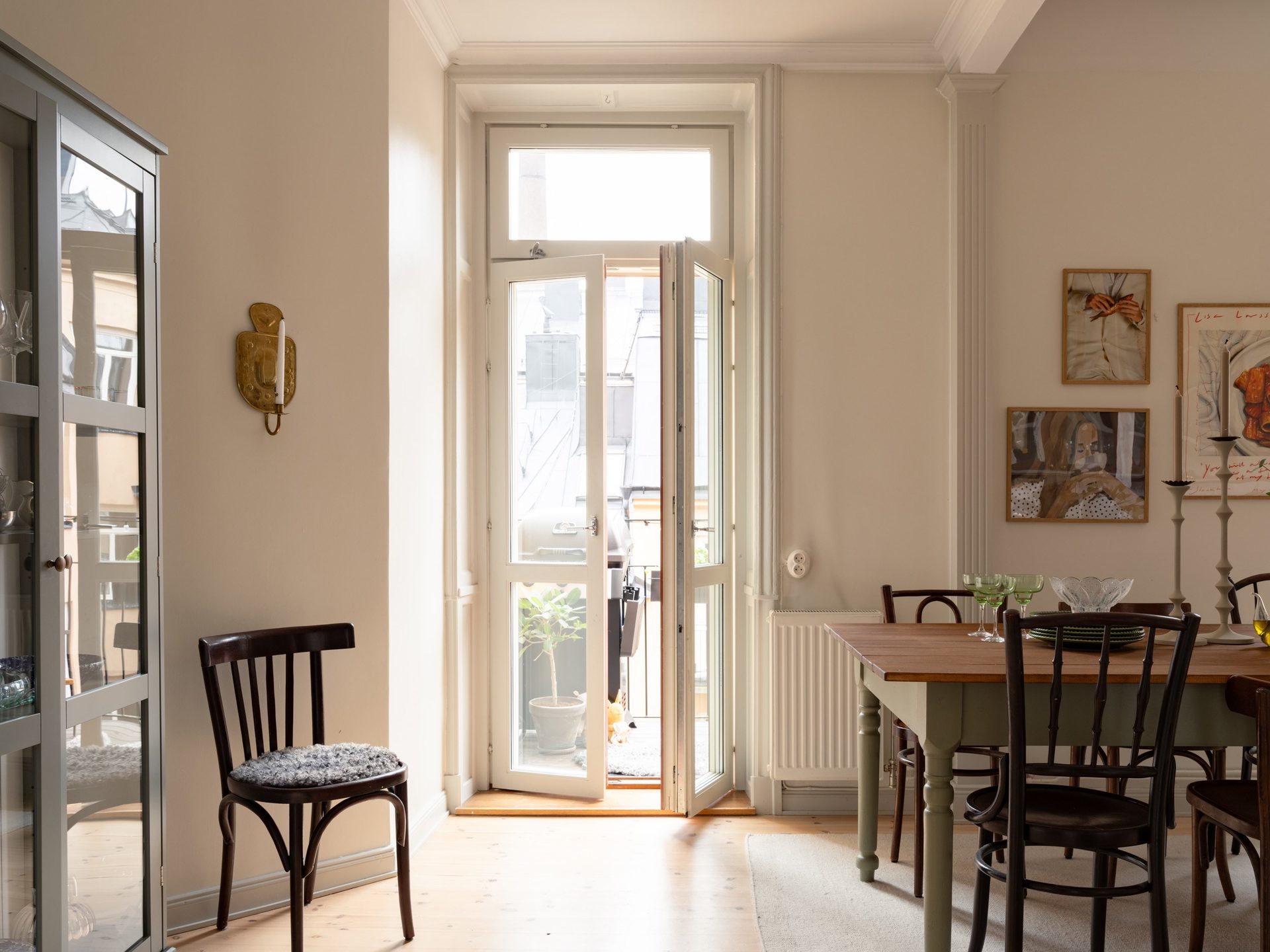 Högst upp i huset på Bondegatan 5 B välkomnar vi till en riktig sekelskiftesdröm med både balkong och fungerande kakelugn. Planlösningen bjuder in till karaktärsfulla rum fyllda av vackra detaljer, alltsammans renoverat till bästa skick med husets ursprung i fokus. Hemmet är som gjort för socialt umgänge, med gott om plats för stora middagar i ett riktigt sällskapskök och mysigt häng i det lika rymliga vardagsrummet. Det finns två bra sovrum, ett större där kakelugnen är placerad, och ett mindre, som också har ett sovloft. Lägenheten har därtill ett badrum med badkar, separat gästtoalett, tvättmaskin och inbyggd förvaring på flera ställen. Takhöjden landar kring 3,10 meter och det höga läget i huset ger ljus och rymd till alla rum, där detaljer som stuckaturer, takrosetter, fotpaneler och spegeldörrar är återkommande detaljer.